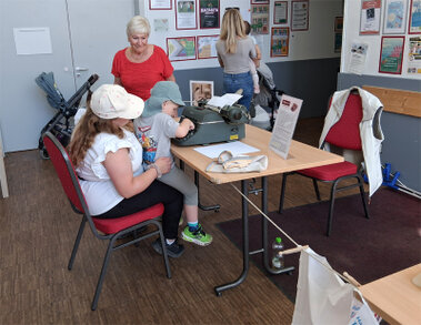 Wir waren am 6. September beim "Tag der Familien" von 13 bis 17 Uhr mit einem Aktionsstand dabei. Eltern konnten mit ihren Kindern eine Zeitreise in die 1950/60er Jahre unternehmen:- Telefonieren mit Wählscheibe statt Tastatur