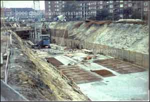1962-1967: Bau der neuen U-Bahn - hier die östliche Ausfahrt der Haltestelle Horner Rennbahn